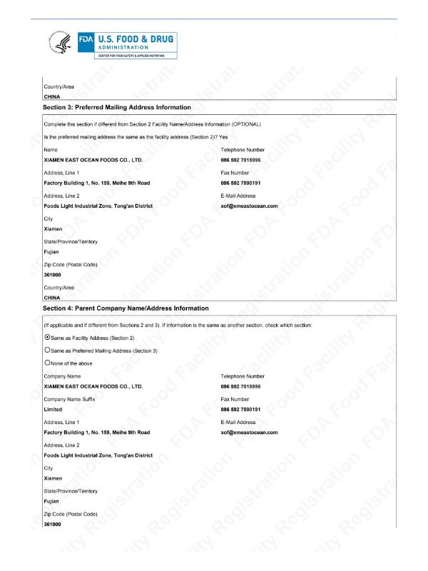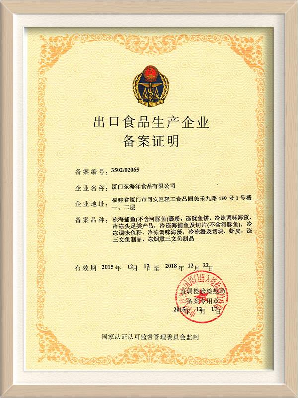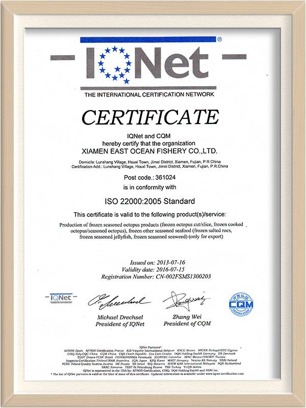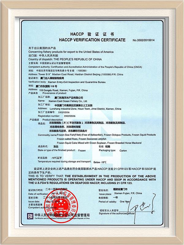 Xiamen East Ocean is established in 1997 which have two factories. Xiamen East Ocean Fishery Co.,Ltd is located at Lunshang Industrial Houxi Jimei District,Xiamen, China. Xiamen East Ocean Foods Co.,Ltd is located at NO.159, 9 Meihe Road, Foods Light Industrial Zone, Tong'an District, Xiamen, China.It covers more than 30,000sqm . Her freezing capacity is 15,000MTs and registered capital is CNY47,260,000. She has built up a complete set of HACCP, EU registration, SC and ISO22000 quality safety system which has an integration of acquisition, production and supplements comprehensively...